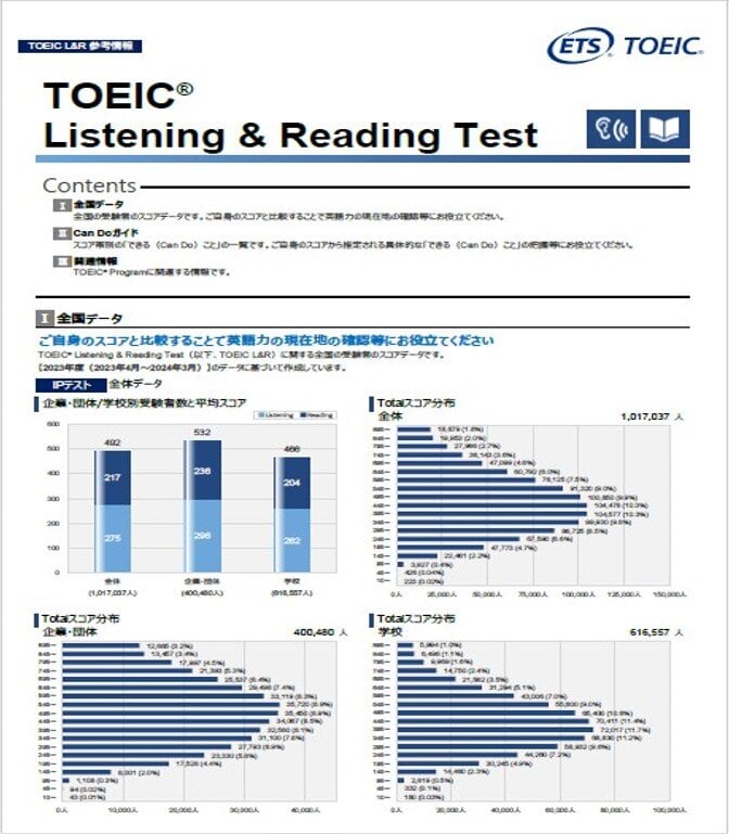 また、全国の受験者のスコアデータ、その他のTOEIC Programに関連する情報も掲載していますので、ぜひお役立てください。